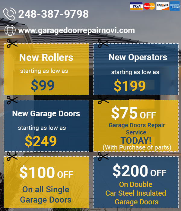 Moreover, if you have rusty hinges and need to replace or repair them, call us. When you require a garage door track alignment, panel replacement, spring repair, opener installation, or another service at a low price in Novi, MI, call us. We have affordable and top-quality overhead parts as well.